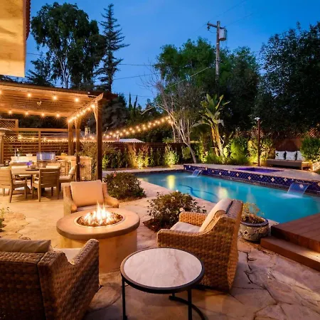 Sherman Oaks Home W Pool, Spa And Outdoor Kitchen features a full kitchen where guests can find an oven and a dishwasher. The Los Angeles accommodation is in close proximity to restaurant Kung Pao Bistro. The nearest train station is 7th St/Metro Center, 50 minutes by car from this Los Angeles accommodation.